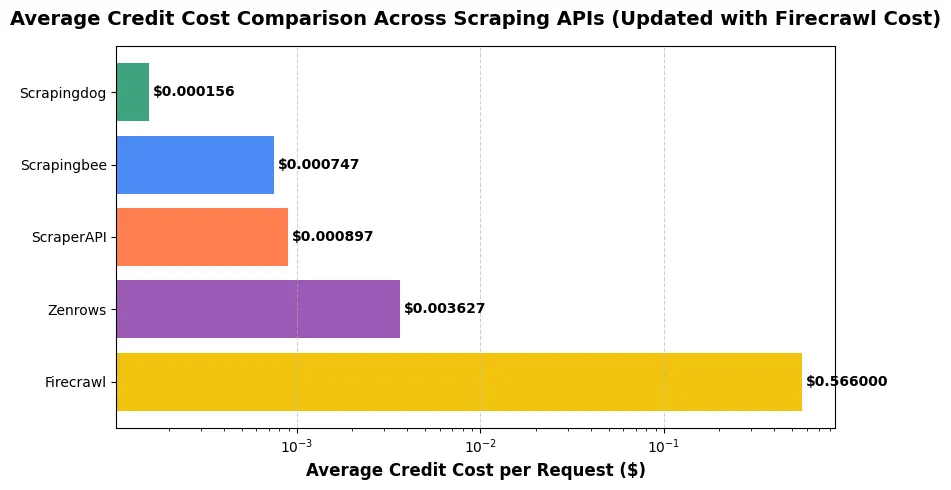 But if you consider the cost as well then the clear choice would be Scrapingdog. Across all three platforms Amazon, Google, and Idealista, Scrapingdog consistently outperformed every other scraping API in both reliability and cost efficiency. While Firecrawl delivered fast responses, its pricing at $0.566 per credit makes it commercially impractical. ScraperAPI and Scrapingbee maintained good success rates but were notably slower and significantly more expensive, especially on Google where response times exceeded 8–20 seconds. Zenrows, on the other hand, struggled with reliability, failing entirely on Idealista and showing poor consistency across tests.