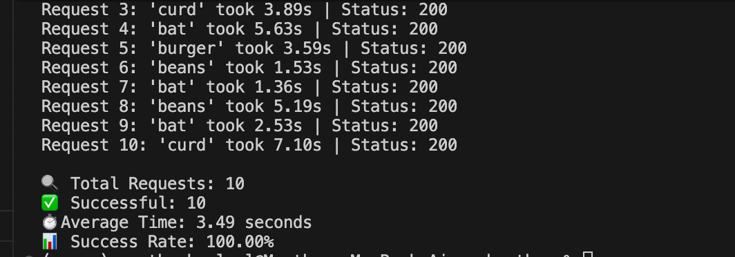 print(f"Request {i+1}: '{search_term}' took {request_time:.2f}s | Status: {response.status_code}")