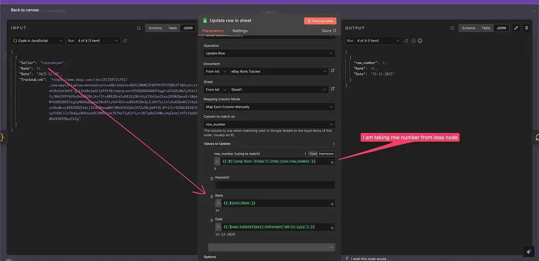 For that, I will add a Google Sheets node & add the relevant data back to it with the fresh date so that I have the updated data every time.